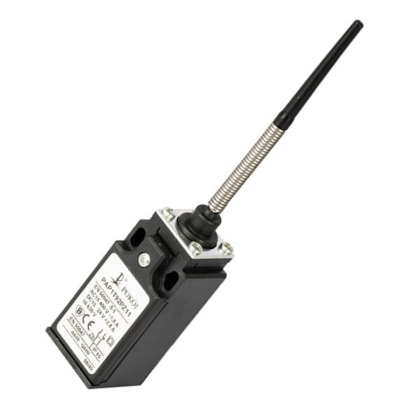 Wyłącznik krańcowy PAP1T92PZ11 Pokój. Łącznik, krańcówka dźwignią elastyczną wielokierunkową. Przechylenie dźwigni w dowolną stronę powoduje przłączenie styku. Wbudowany jest styk NO oraz NC. Napięcie max 400V AC