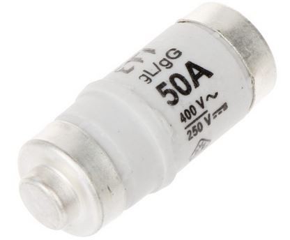 typ: DO2 gG 50A napięcie znamionowe: 400V AC /250V DC prąd znamionowy: 50A charakterystyka: gL-gG wymiary: fi A 14,5mm.