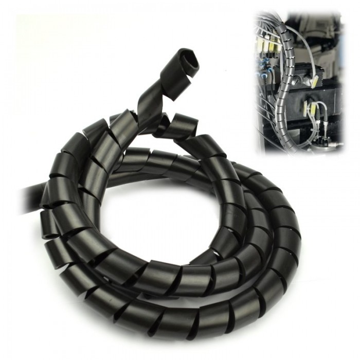 Materiał Tworzywo sztuczne polietylen UL 94 HB Kolor Czarny Model Spiralny Temperatura pracy od -30°C do 70°C Średnica wiązki od 24mm do 80mm Rodzaj materiału Polietylen Grubość ścianki 2mm