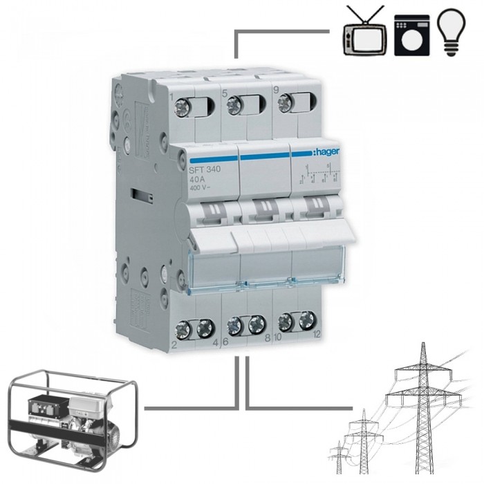 Przełącznik SFT340 40A 3P modułowy 1-0-2 Hager