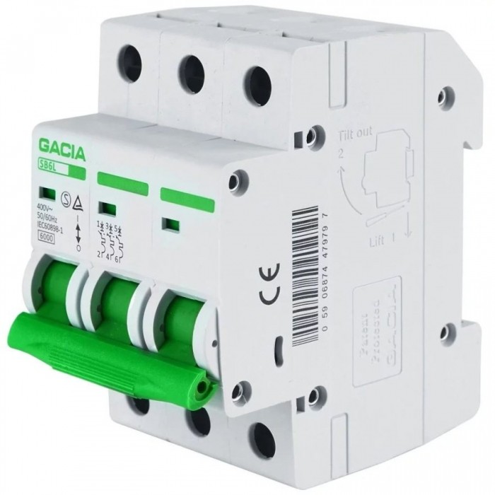 Wyłącznik nadmiarowoprądowy 3-fazowy SB6L GACIA 3P 6kA, Prąd znamionowy 16A, Charakterystyka typu B