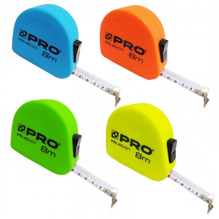 Ergonomiczna kaseta wykonana z tworzywa TPR zapewaniającego wysoki komfort podczas pracy Dwa funkcjonalne hamulce: zapadkowy i dolny Ruchomy, wzmocniony zaczep taśmy Szerokość taśmy: 16 mm Podziałka w II klasie dokładności Kształt i oznaczenie kasety umożliwiają pomiar długości od tylnej ścianki obudowy taśmy Trwały, metalowy zaczep do paska Zaczep na gwoździe i śruby Wygodna, gumowa tasiemka na rękę
