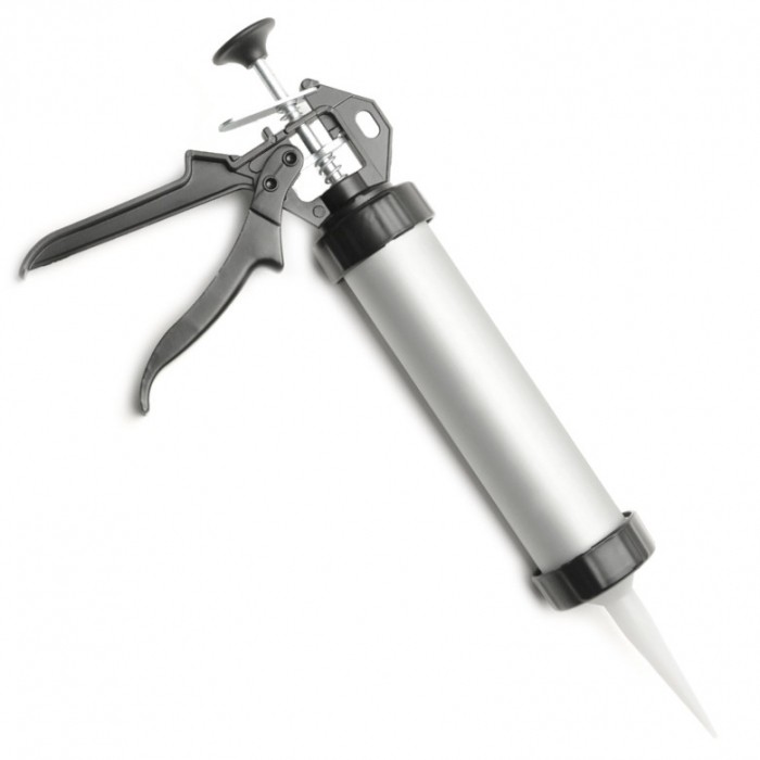 Do stosowania z zasobnikami 300 ml Stalowy tłok i obracane stalowe łożysko Trwała konstrukcja ze stopu aluminium Wzmocniona nakrętka ze stopu aluminium Okrągły przekrój tłoka Ergonomiczna aluminiowa rękojeść Doskonale spasowany mechanizm spustu