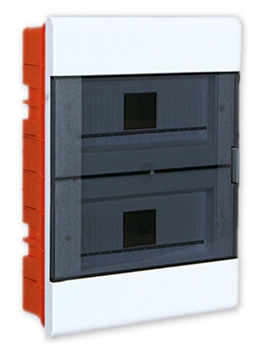 Model: SRp-24 Rzędy: 2x12 modułów Możliwość plombowania : TAK Klasa ochronności: II Napięcie: 230/400 V~ przekrój przewodu: 10 mm max Kolor: biały Materiał: ABS/PC Stopień ochrony: IP40 Odporność na uderzenie: IK07 Wymiary (wys.×szer.×głęb.): 397×298×104 mm Waga: 1,6 kg Norma: PN-EN 62208:2006, EN 62208:2003