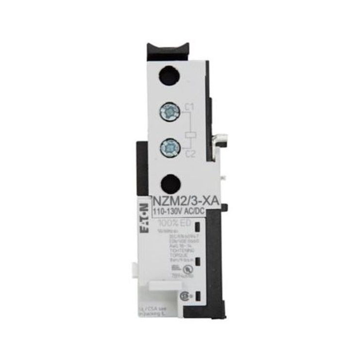 Wyzwalanie przełączników przy impulsie napięcia lub dostarczeniu napięcia trwałego. Jeśli wyzwalacz wzrostowy jest pod napięciem, kontakt z głównymi stykami wyłącznika jest niemożliwy po jego włączeniu. Nie można jednocześnie instalować wyzwalaczy napięciowych z pomocniczym zestykiem zwiernym przyspieszonym NZM...-XU... lub wyzwalaczem podnapięciowym NZM...-XU....