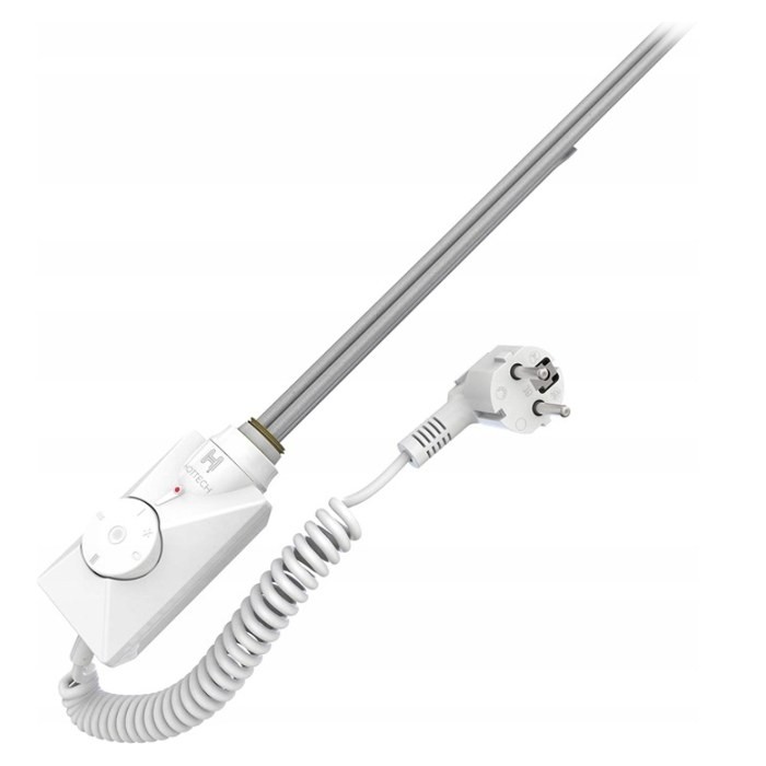 Typ: Grzałka grzejnika łazienkowego Marka: Hottech Seria: Volcano Moc: 600 W Płynna regulacja (za pomocą pokrętła) temperatury wody w grzejniku (w zakresie 0-65°C) - termostat elektroniczny Tryb TURBO – proste grzanie i suszenie nastawiane na 1, 2 lub 3 godziny poprzez naciśnięcie pokrętła Kontrola obecności wody w grzejniku – bezproblemowe użytkowanie, bez ryzyka uszkodzenia bezpiecznika termicznego Niskie zużycie energii w trybie czuwania Tryb antyzamarzaniowy – mikroprocesor nie pozwoli na spadek temperatury wody poniżej 5°C. Podwójne zabezpieczenie przed przegrzaniem Kolor: Biały Grzałka elektryczna VOLCANO to jeden z dwóch (obok modelu DROP) podstawowych modeli z elektronicznym regulatorem temperatury. Grzałka przeznaczona jest do grzejników łazienkowych, ale może także pracować zamontowana poziomo w grzejnikach pokojowych (np. aluminiowych). Kwadratowa obudowa zaprojektowana jest szczególnie do grzejników z prostokątnym kolektorem .