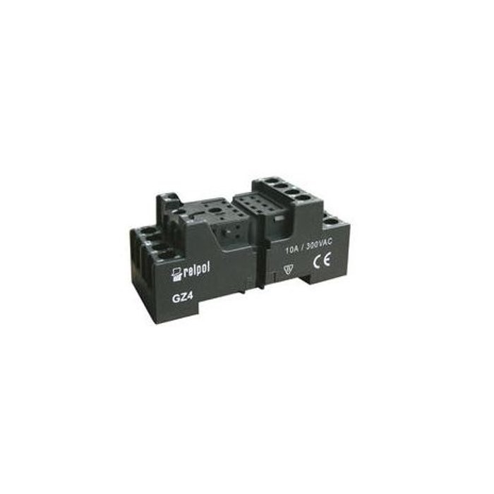 Gniazdo z zaciskami śrubowymi. Maksymalny moment dokręcenia zacisku: 0,7 Nm. Montaż na szynie 35 mm wg PN-EN 60715 lub na płycie 66,4 x 29,5 x 29 mm. Cztery tory prądowe. Obciążenie znamionowe 10 A, 300 V AC.