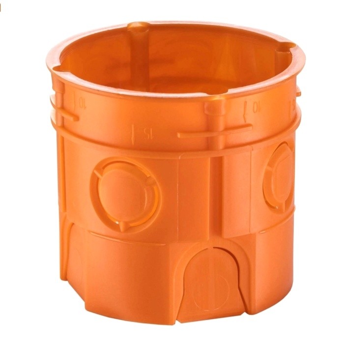 Puszka podtynkowa pogłębiana pomarańczowa Z 60DFw 60mm z wkrętami Puszka instalacyjna o średnicy 60mm podtynkowa głęboka wykonana jest z tworzywa sztucznego o wysokiej wytrzymałości mechanicznej.