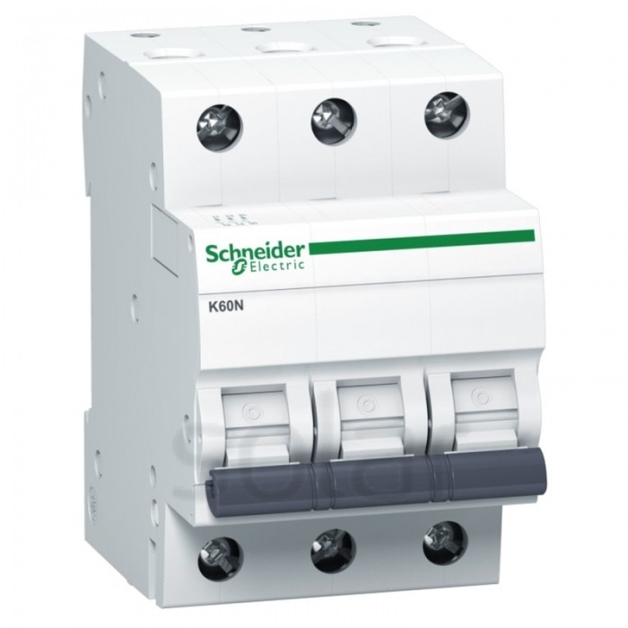 Wyłącznik nadprądowy SCHNEIDER ELECTRIC serii K60N, K60N-B25-3, 3-biegunowy (trójbiegunowy), 25A, charakterystyka B, wytrzymałość zwarciowa 6kA, zapewnia ochronę przed zwarciami i przeciążeniami.