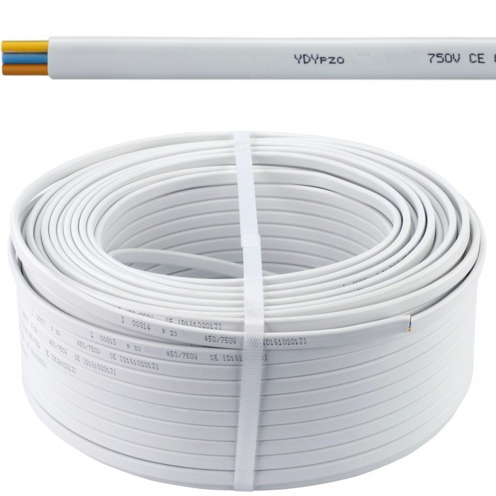 Kabel YDYp to przewód o izolacji z polwinitu izolacyjnego (Y) żyłach miedzianych jednodrutowych (D) oraz o powłoce polwinitowej (Y), płaski (p).
