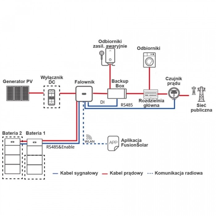 Moduł zasilania awaryjnego dla 3-fazowych HUAWEI serii M1; wydzielony obwód 1-faz Nap:230VAC Moc max: 3,3kVA (dla 10KTL) i 1/3 mocy max falownika / Prąd max: 15,2A Czas przełączania <3s