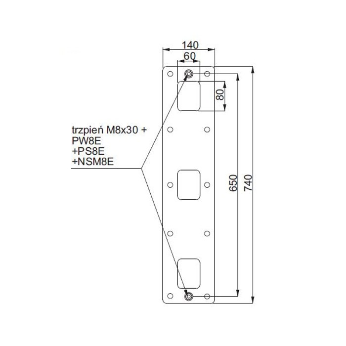 - trzpień gwintowany M8x30 na stałe przytwierdzony do blachy