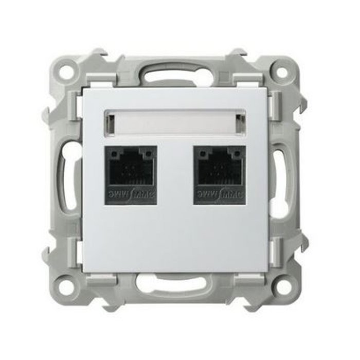 Gniazdo komputerowe (RJ45) podwójne przeznaczone do podłączenia dwóch kabli sygnałowych kategorii 5e (UTP) typu skrętka (internet). Do kompletu wymagana ramka. Można stosować do systemów ramkowych wielokrotnych.