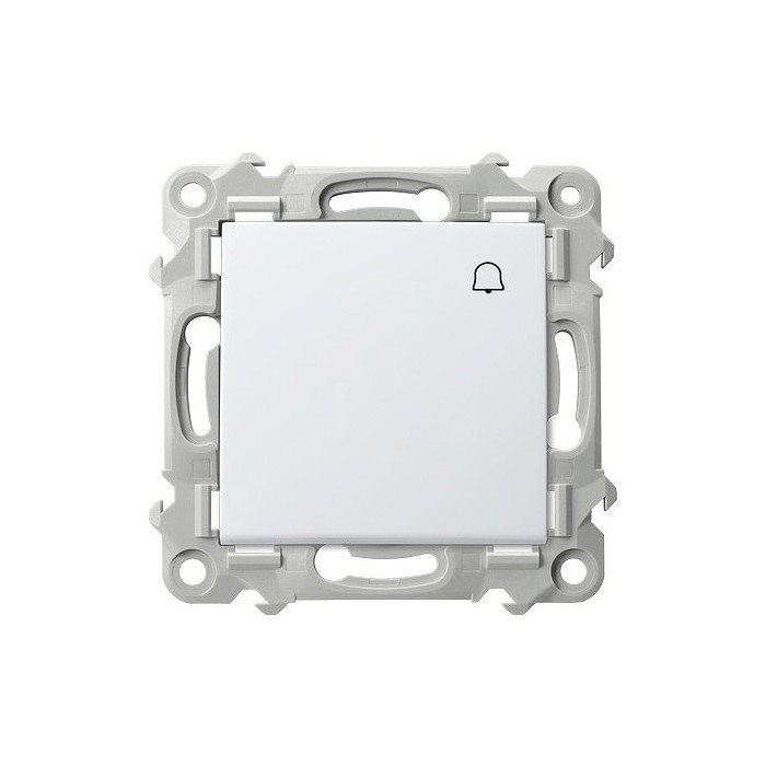 Łącznik działa jako przycisk zwierny, odbijający. Służy do załączania dzwonka, gongu. Do kompletu wymagana ramka. Można stosować do systemów ramkowych wielokrotnych.