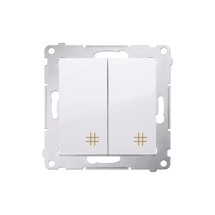 Simon54 Łącznik krzyżowy podwójny białySeria : Simon 54Nazwa produktu/Rodzaj łącznik krzyżowy podwójnyKolor : białyRAL (zbliżony) : RAL 9003Typ produktu : modułPrąd znamionowy świetlówkowy : 10AXNapięcie znamionowe : 250VRodzaj podłączenia / Typ zacisku : szybkozłączaStopień ochrony IP : IP20Uwagi : Do uzyskania klasy bryzgoszczelności IP44 zastosować uszczelkę ramkiPodświetlenie : opcjonalne, niedołączoneKlasa ETIM : EC001590 Łącznik instalacyjnyNadruk/Piktogram : symbol „krzyżowy”Rodzaj materiału : tworzywo sztuczne, PC, bezhalogenoweZabezpieczenie powierzchni : naturalneWykończenie powierzchni : błyszcząceSposób montażu [ETIM] : montaż podtynkowySposób mocowani : pazurki / wkrętyWysokość produktu : 75mmSzerokość produktu : 75mmGłębokość produktu : 41mmGłębokość wbudowania : 26mmMetoda eksploatacji/Sposób działania : klawisz kołyskowyIlość klawiszy / dźwigni : 2Układ połączeń : Łącznik krzyżowy (bistabilny)Ilość w opakowaniu zbiorczym : 10Jednostka miary szt.EAN opakowanie jednostkowe : 5902787833961Typ opak. jedn. folia zgrzewanaWys. opak. jedn. : 16cmSzer. opak. jedn. : 11cmDł. opak. jedn. 4.5cmWaga jedn. : 0.073kgEAN13 opak. : 5902787833961Typ opak. zbiorczego : pudełko zamykaneWys. opak. zbiorczego : 10cmSzer. opak. zbiorczego : 19cmDł. opak. zbiorczego : 23cm