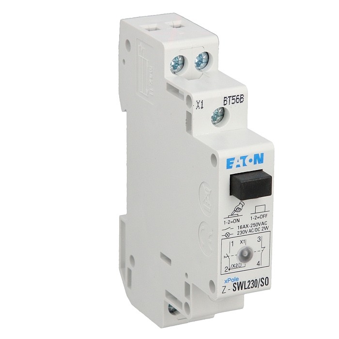 Szerokość wyrażona liczbą modułów wynosi tylko jeden, co sprawia że przełącznik zajmuje bardzo mało miejsca w szafce instalacyjnej czy puszce natynkowej. Wymuszone otwarcie styków