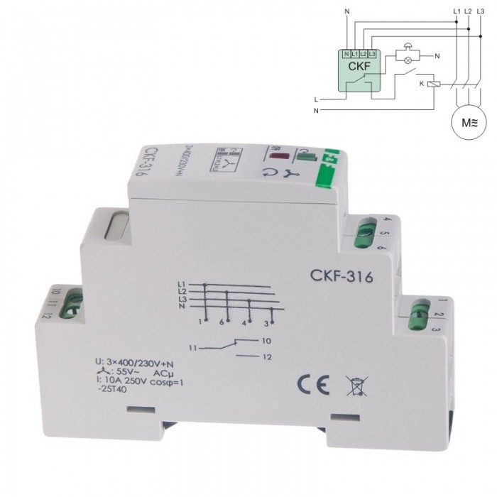 Czujnik kolejności i zaniku faz służy do zabezpieczania silników elektrycznych zasilanych z sieci trójfazowej w przypadkach zaniku napięcia w co najmniej jednej fazie lub asymetrii napięć między fazami,które grożą zniszczeniem silnika. Zabezpiecza też kierunek obrotów silnika w przypadku zmiany faz przed czujnikiem.