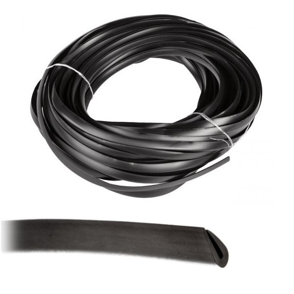 Osłona krawędzi OKU 4/2 w czarnym kolorze. Produkt został wykonany z materiału PCV. Specjalnie przygotowana mieszanka tworzywa sztucznego generuje niezwykłe właściwości. Sprawiają one, że osłona jest szczególnie odporna na niekorzystne działanie typowych rozpuszczalniki, smary itp. Jest przeznaczona do osłony krawędzi blachy w miejscach przeprowadzenia przewodów lub kabli. Chroni w odpowiedni sposób przed uszkodzeniem i zapewnia stuprocentowo pewną izolację elektryczną.