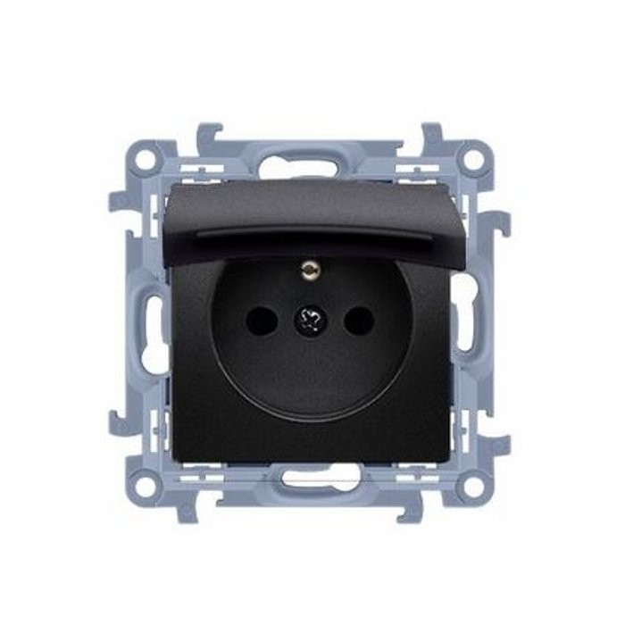 Simon 10 Gniazdo wtyczkowe z uziem. do wersji IP44 Z USZCZELKĄ– klapka transparentna (moduł) szybkozłącza, czarny mat CGZ1BC.01/49A