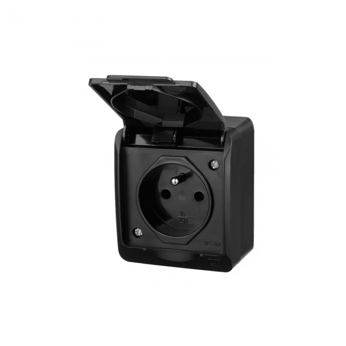 Gniazdo pojedyncze n/t IP44 HERMES czarne 0321-09 Elektro-Plast Nasielsk. Praktyczne gniazdko pojedyncze z uziemieniem i klapką ochronną. Obudowa gniazda 0321-09 wykonana jest z tworzywa sztucznego, w kolorze czarnym. Producent EPN zadbał o ciekawe wykończenie tego modelu – powierzchnia powiem nie jest gładka, a matowa – daje to nowoczesny wygląd tego kontaktu. Oferowany w naszej hurtowni elektrycznej HERMES antracyt 0321-09 przeznaczony jest do montażu naściennego. Można go stosować zarówno w pomieszczeniach, jak i na zewnątrz budynków. To praktyczne gniazdo 1x sprawdzi się świetnie np. w garażu, warsztacie, kuchni, czy pralni. Charakteryzuje się bowiem stopniem szczelności IP44 – czyli jest odporne na zachlapania i zabrudzenia. Hermes 1x2P+Z pracuje z napięciem 250V i prądem 16A. Jego wymiary to 65x75x48 mm. Przewody są montowane na zaciski gwintowe. Model ten wykonany jest w II klasie izolacji.