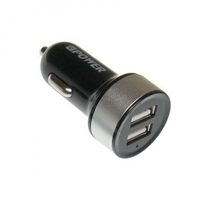Typ: ładowarka samochodowa USB Złącza: 2x USB typu A Napięcie nominalne USB: 5V Napiecie zasilania: 12V - 24V DC Maksymalny prąd wyjściowy: 3.1A Wymiary: fi=31 x 61 mm Sygnalizacja pracy: LED Kolor: Czarno-srebrny