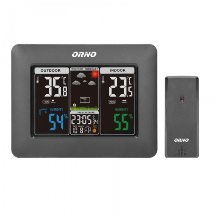 Bezprzewodowa stacja pogodowa sterowana radiowo, wyświetla wartości temperatury i wilgotności wewnętrznej i zewnętrznej. Termometr przeznaczony jest do odbierania sygnału czujnika zewnętrznego, który przesyła dane do stacji pogodowej drogą radiową. Stacja wewnętrzna przeznaczona jest wyłącznie do użytku wewnątrz pomieszczeń. Możliwość rozbudowy o dwa dodatkowe czujniki zewnętrzne.