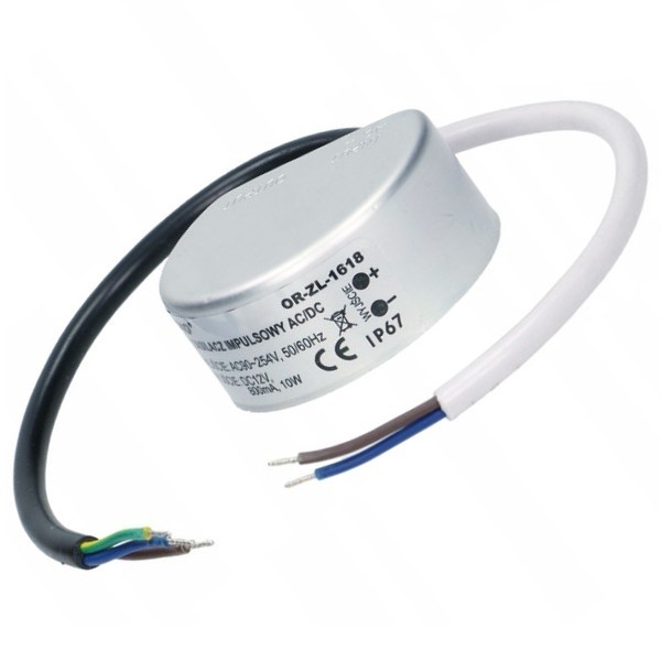 Typ: Zasilacz LED do puszki Napięcie wyj.: 12V Moc max: 10W, Prąd max: 0,8A Napięcie wejścia 90-254V~ Klasa szczelności IP67 Model: OR-ZL-1618 Producent: ORNO Wymiary (szer./wys./gł. [mm]) 58 / 25 / 50