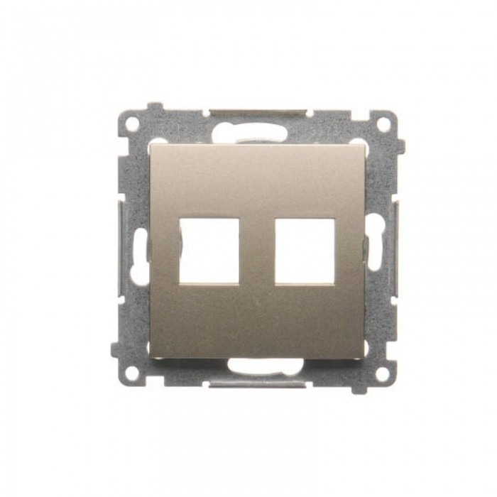 Seria: Simon 54 Nazwa produktu/Rodzaj: pokrywa gniazd teleinformatycznych na Keystone płaska podwójna Kolor: złoty mat, metalizowany Typ produktu: moduł Stopień ochrony IP: IP20 Uwagi: pasuja wkłady RJ45 / RJ12 dedykowane do pokrywy telekomunikacyjnej Simon54 Liczba modulów: 1 Liczba jednostek: 2