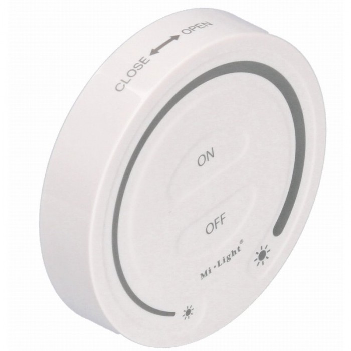 Pilot naścienny FUT087 Mi-Light jest urządzeniem przeznaczonym do obsługo produktów MONO, CCT i RGB+CCT. Pilot naścienny pozwala na płynną regulację jasności światła białego. Komunikacja z produktami odbywa się bezprzewodowo. Urządzenie zasilane jest bateryjnie 2 x AAA, przeznaczone do instalacji natynkowej za pomocą dołączonej taśmy dwustronnej lub śrub.