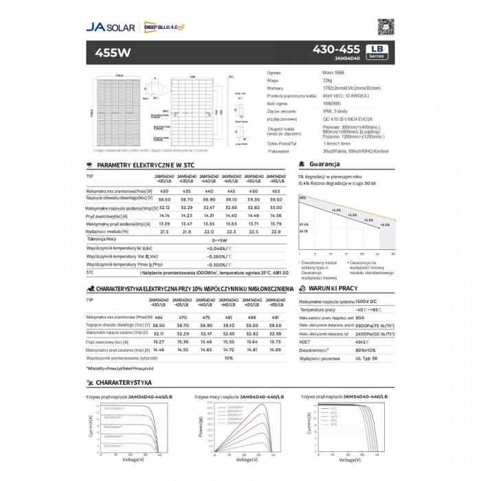 Współczynnik temperaturowy mocy Pmax: -0.300 %/'C