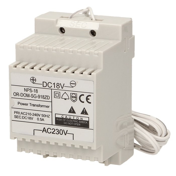 Oryginalny zasilacz ORNO na szynę DIN 18VDC/0,5A do domofonów z serii SAGITTA OR-DOM-SG-918ZD