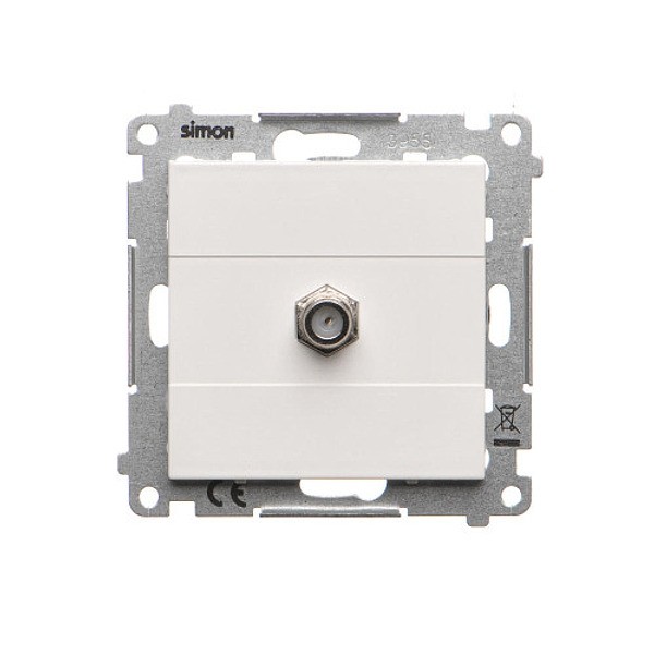 Seria: Simon 55 Nazwa produktu/Rodzaj: gniazdo antenowe typu „F” pojedyncze Kolor: biały mat RAL (zbliżony): RAL 9003 Typ produktu: moduł Rodzaj podłączenia / Typ zacisku: wtyk Stopień ochrony IP: IP20