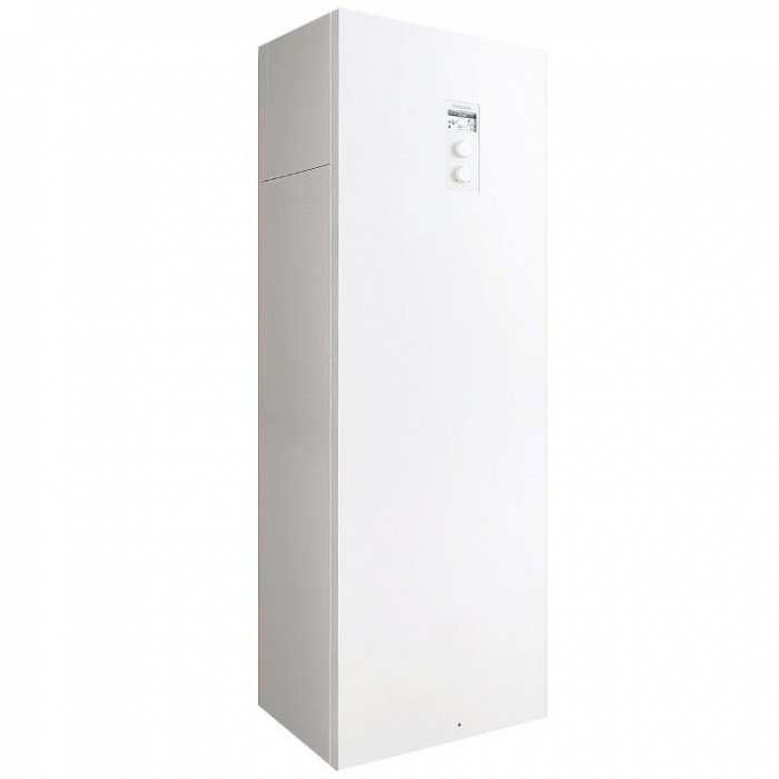 - Cała kotłownia zintegrowana w jednej obudowie zawiera kocioł c.o. ze sterowaniem pogodowym, zasobnik ciepłej wody o poj. 130l, przeponowe naczynia wzbiorcze c.o. i c.w.u. o pojemności 12 litrów, pompę obiegową oraz pozostałą niezbędną armaturę