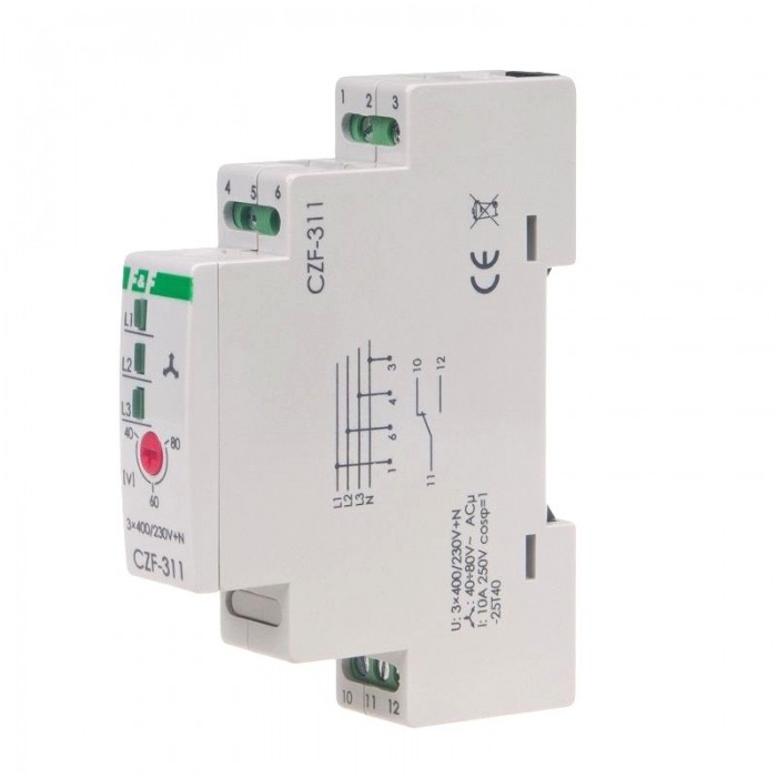 Przekaźnik zaniku i asymetrii faz 10A 1P 4sek 40-80V CZF-311 na szynę TH35 DIN