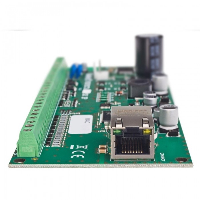 Płyta elektroniki centrali wyposażona jest w 8 wejść i 4 wyjścia przewodowe. Ich liczbę można zwiększyć przez podłączenie modułów rozszerzeń: ekspanderów wejść INT-E i wyjść INT-O albo INT-ORS. Pozwala to rozbudowywać system, dołączając więcej czujek, sygnalizatorów czy urządzeń wykonawczych (do sterowania bramą garażową, roletami, zraszaczami ogrodowymi).