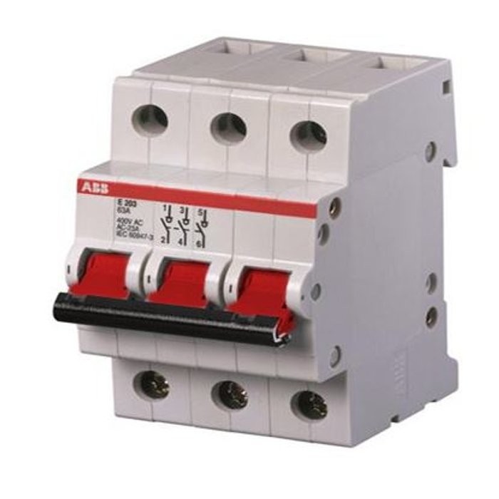 Rozłącznik marki ABB przystosowany do pełnienia funkcji rozłącznika głównego. Przeznaczony jest do montażu w tablicach rozdzielczych za pomocą osadzonych wkrętów z łbem pozidrive rozmiar 2. Nie należy montować go w środowisku podwyższonej wilgotności, czy zapylenia (IP20).