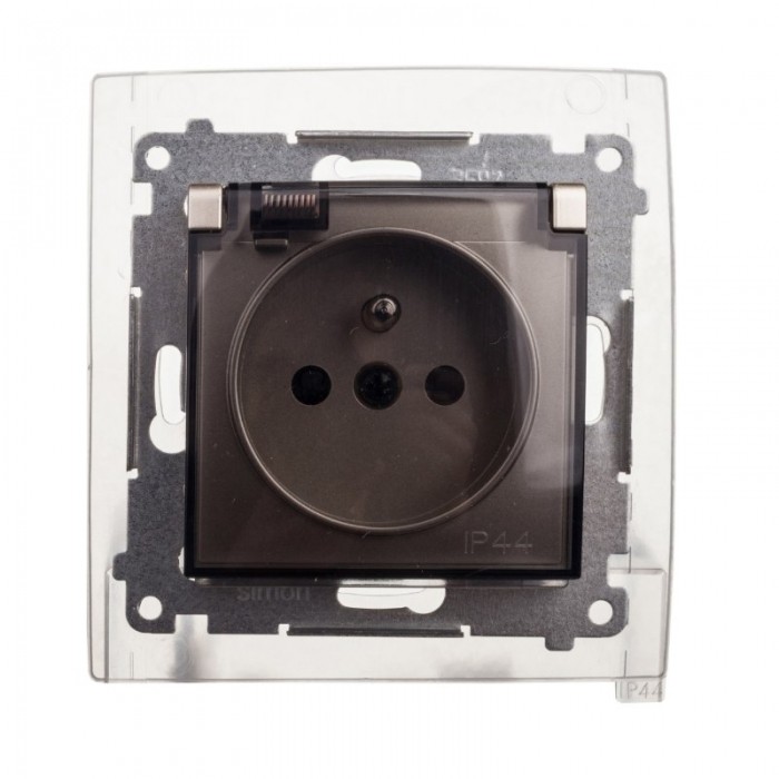 Simon54 Gniazdo pojedyncze z/u IP44 złoty mat tran