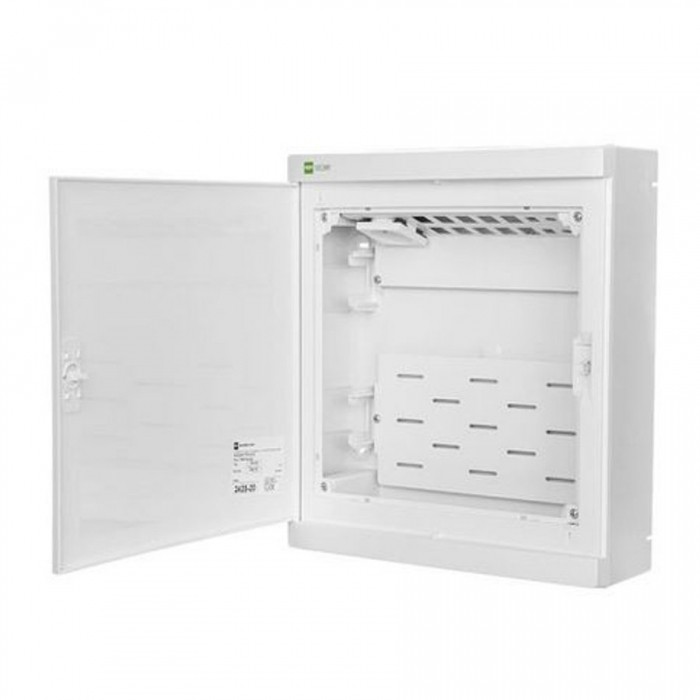 Modularność: Od 5 do 54 modułów. Liczba rzędów: Dostępne warianty 1-, 2- lub 3-rzędowe (12 modułów w rzędzie). Klasa izolacji: II klasa izolacji, co zapewnia wysoki poziom bezpieczeństwa. Stopień ochrony: IP40 – ochrona przed ciałami obcymi o średnicy >1 mm. Kolor i materiał drzwi: Białe drzwi dopasowane do koloru obudowy.