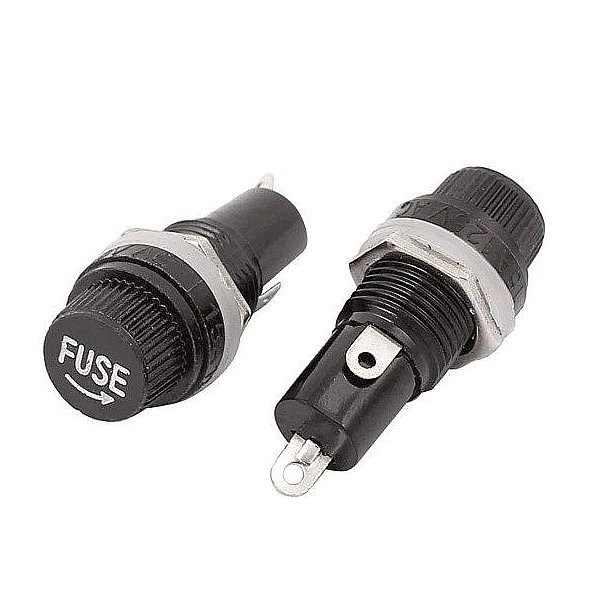 Gniazdo szklanego bezpiecznika topikowego 5x20mm przykręcane do obudowy.