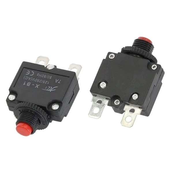 Termobimetaliczny wyłącznik nadprądowy, automatyczny z przyciskiem wciskanym, bezpiecznik 8A / 250V AC, przykręcany z złączami konektorowymi