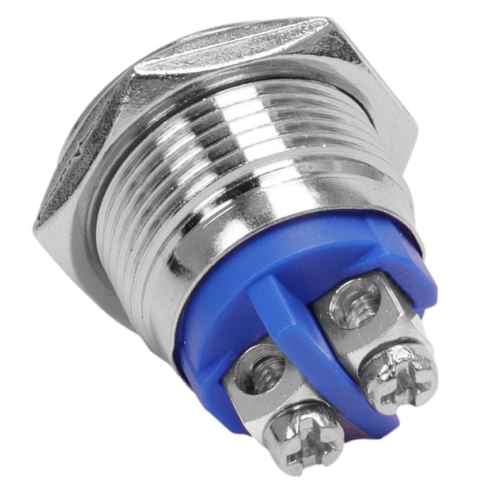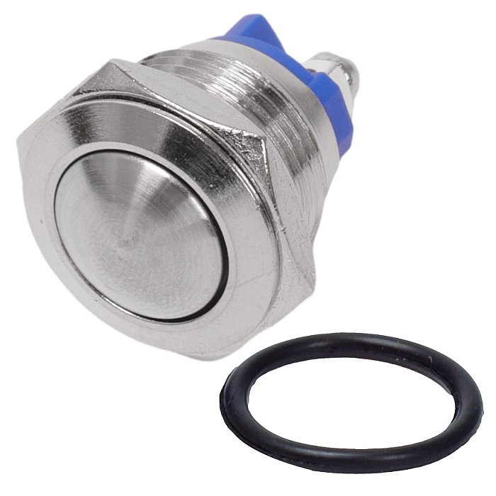 Przełącznik przycisk chwilowy 16mm PBW-16BKS okrągły zwierny, metalowy, styk NO, alu, przykręcany