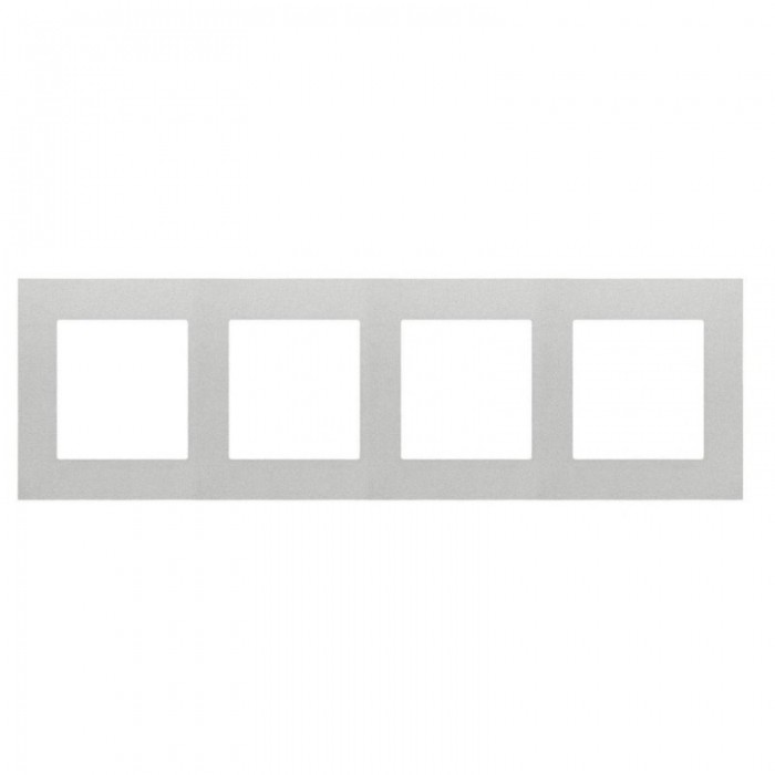 Seria: Simon 55 Nazwa produktu/Rodzaj: ramka 4- krotna Kolor: aluminium mat RAL (zbliżony): RAL 9006 Stopień ochrony IP: IP20/IP44 Uwagi: Do uzyskania klasy bryzgoszczelności IP44 zastosować uszczelkę ramki Liczba modulów: 4