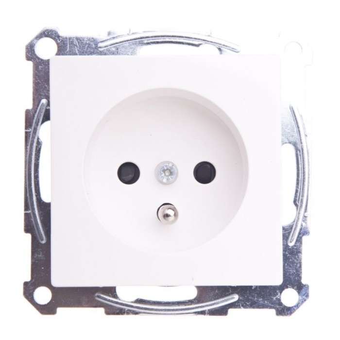 Merten System M to nowoczesna linia innowacyjnych gniazd oraz łączników, dostępnych w różnych wersjach kolorystycznych. Seria została wyprodukowana przez znany i ceniony na całym świecie koncern Schneider Electric, który pracuje na zaufanie swoich klientów już od 1836 roku. Prezentowane gniazdo pojedyncze - zgodnie z zaleceniami producenta - zostało przeznaczone do instalacji podtynkowej za pomocą sprawdzonej i bezpiecznej metody na pazurki oraz śrubę przez zacisk śrubowy. Montując gniazdo należy wziąć pod uwagę jego stopień ochrony - IP20. Zgodnie z nim, osprzęt jest powinno się montować wyłącznie w suchych pomieszczeniach wewnątrz budynków. Warto również zwrócić uwagę na parametry elektryczne gniazda. Jego znamionowe napięcie wynosi bowiem 250 V, a wartość prądu znamionowego jest równa 16 A. Z kolei częstotliwość zasilania wynosi 50Hz. Powyższe gniazdo posiada bolec uziemiający oraz praktyczne zabezpieczenie przed dziećmi. Gniazdo zostało wykonane z bezhalogenowego tworzywa termoplastycznego, które jest wyjątkowo odporne na ścieranie. Produkt jest dostępny w uniwersalnym odcieniu polarnej bieli z eleganckim, błyszczącym wykończeniem.