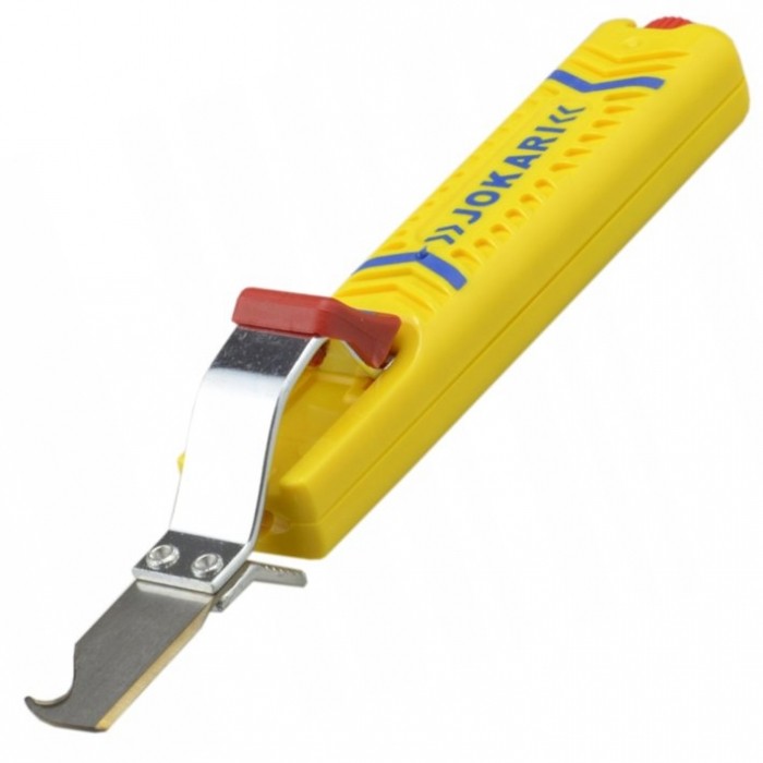 Noże JOKARI do okablowania to najlepsze narzędzie do odizolowywania wszystkich standardowych kabli o okrągłym przekroju. Ostrze noża automatycznie przesuwa się z cięcia okrężnego do cięcia wzdłużnego, co znacznie ułatwia pracę. Każdy nóż JOKARI do okablowania ma specjalną powłokę z azotanu tytanu, dzięki czemu jest trwalszy, tnie szybciej i zużywa się znacznie wolniej niż zwykłe narzędzia.