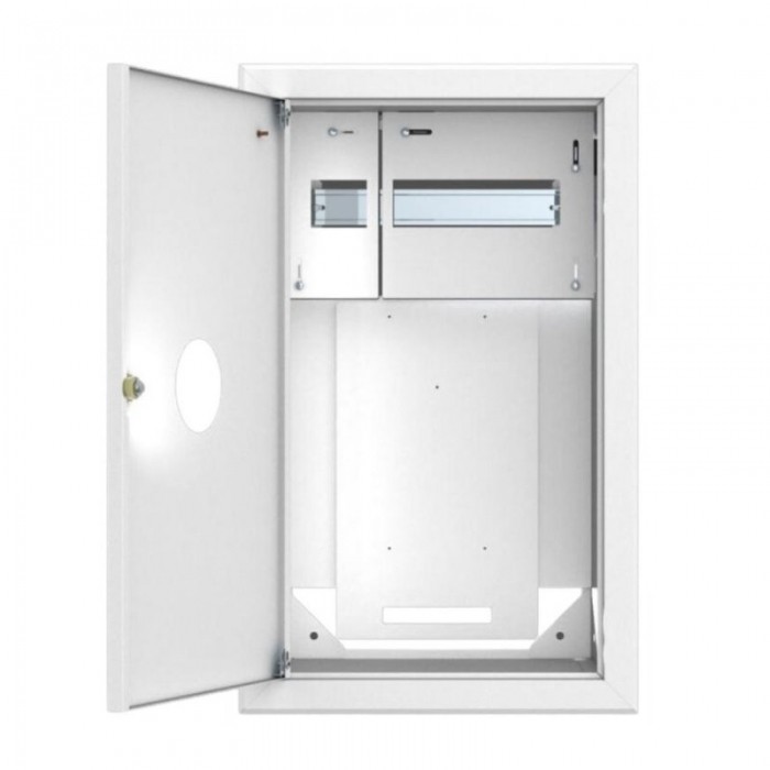 Deska pod licznik 3-fazowy: Umożliwia montaż trójfazowego licznika energii elektrycznej Euroszyna: Do montażu urządzeń elektrycznych Miejsce na 12 zabezpieczeń typu S: Z osłoną plombowaną, co umożliwia plombowanie i zabezpieczenie dostępu Listwa zerowa PE i N: Zapewnia odpowiednie podłączenie przewodów ochronnych i neutralnych Drzwiczki zamykane na zamek patentowy: Wyposażone w okienko do odczytu licznika, co umożliwia szybki dostęp do danych bez konieczności otwierania całej rozdzielnicy Rozdzielnica licznika podtynkowa to solidne i bezpieczne rozwiązanie do instalacji elektrycznych w budynkach mieszkalnych, zapewniające estetyczny montaż i łatwy dostęp do liczników oraz zabezpieczeń.