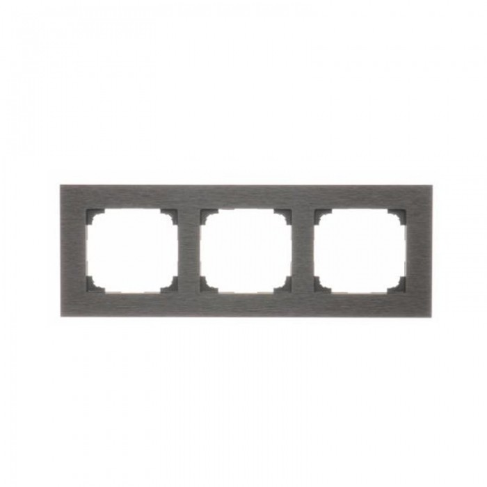 Seria: Simon 55 Nature Nazwa produktu/Rodzaj: ramka 3- krotna metalowa Kolor: Inox czarny Stopień ochrony IP: IP20/IP44 Uwagi: Do uzyskania klasy bryzgoszczelności IP44 zastosować uszczelkę ramki Liczba modulów: 3