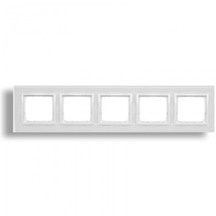 Seria: Simon 54 Nature Nazwa produktu/Rodzaj: ramka 5- krotna szklana Kolor: biała perła Stopień ochrony IP: IP20/IP44 Uwagi: Do uzyskania klasy bryzgoszczelności IP44 zastosować uszczelkę ramki, Nie pasuje do łącznika hotelowego Kolor pierścienia: biały Liczba modulów: 5