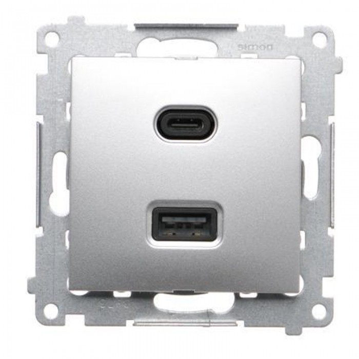 Simon 54 Ładowarka USB C+A, 30 W, srebrny